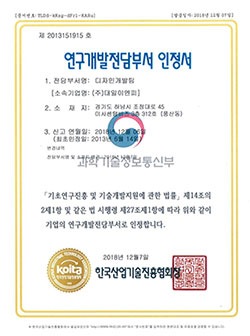 연구개발전담부서가 있다는 것은 그 전문성을 인정받은 것이고, 꾸준한 개발 활동은 다양한 특허 등록으로 이어지고 있고, 이것이 곧 우리 거래처와의 상호 발전 경쟁력으로 자리 잡고 있습니다.